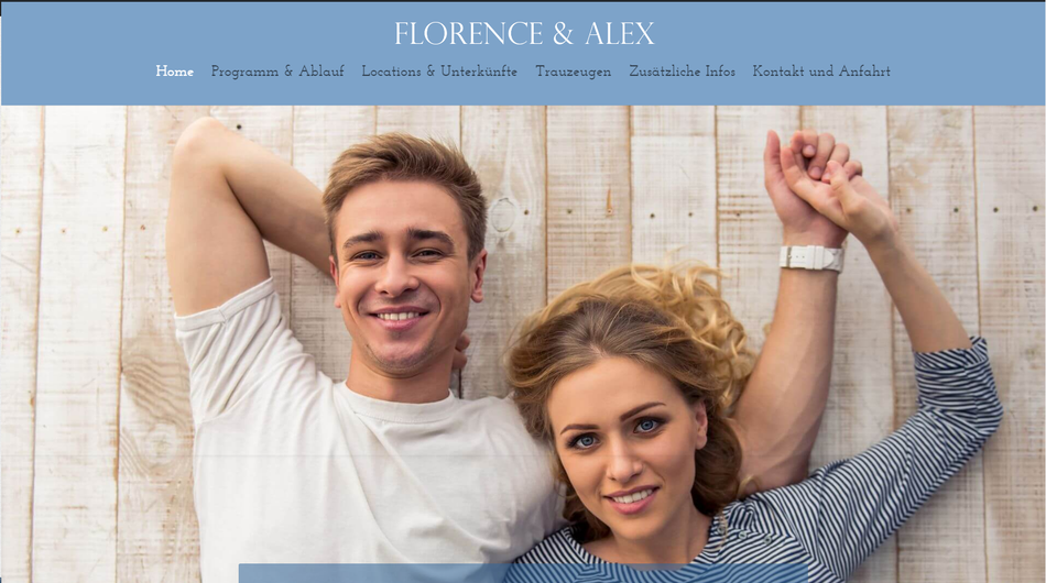 Für die Homepage wie für das Hochzeitslogo gilt, dass das Brautpaar aus mehreren Vorlagen und Vorschlägen wählen und diese anpassen lassen kann. Falls keine der Vorlagen den Geschmack des Paares trifft, erstellen wir für die beiden ein individuelles Design nach ihren Wünschen und Vorstellungen.