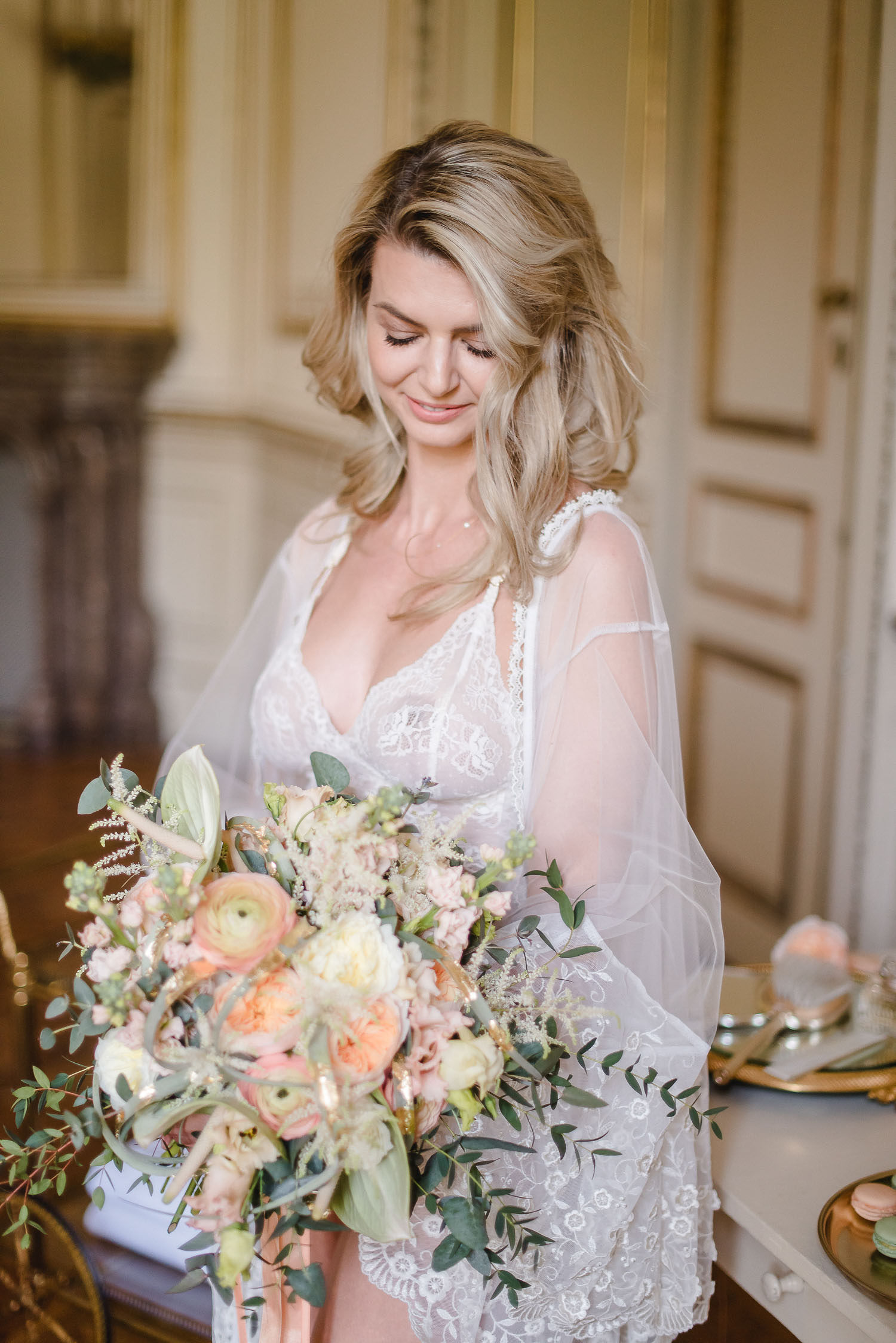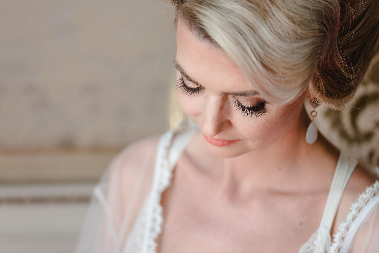 Brautkleid, Schuhe und Juwelen liegen bereit für den großen Auftritt. Die entspannte Braut fühlt sich wohl und genießt ihr Getting Ready in feiner Lingerie, gönnt sich ein Glas Champagner und lässt sich rundum verwöhnen.