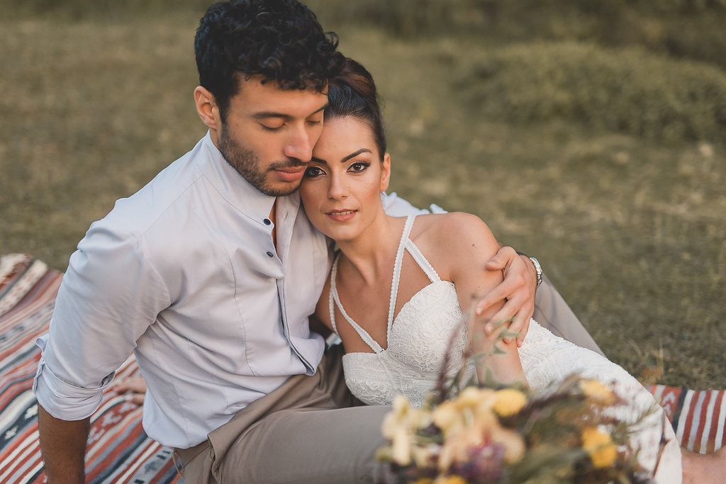 Es sollte kein leichtes Unterfangen werden, denn ein Styled Shooting mit Tieren war eine ganz neue Herausforderung für uns alle. Zum einen haben Kamele ihren eigenen Kopf und posieren nicht dann, wenn es uns am besten passen würde. Zum anderen, mögen sie Regen noch viel weniger als wir. Leider fing es gerade in dem Moment an zu regnen, als wir das gesamte Shooting-Set Up aufgebaut hatten. Alle Requisiten mussten so schnell wie möglich abgedeckt werden, denn was die nächsten Stunden folgte, war Dauerregen. Bilder im Regen standen nicht auf unserer Wunschliste. Und auch wenn, es hätte ohnehin keine Chance gegeben, die Kamele aus ihrem Quartier zu holen.