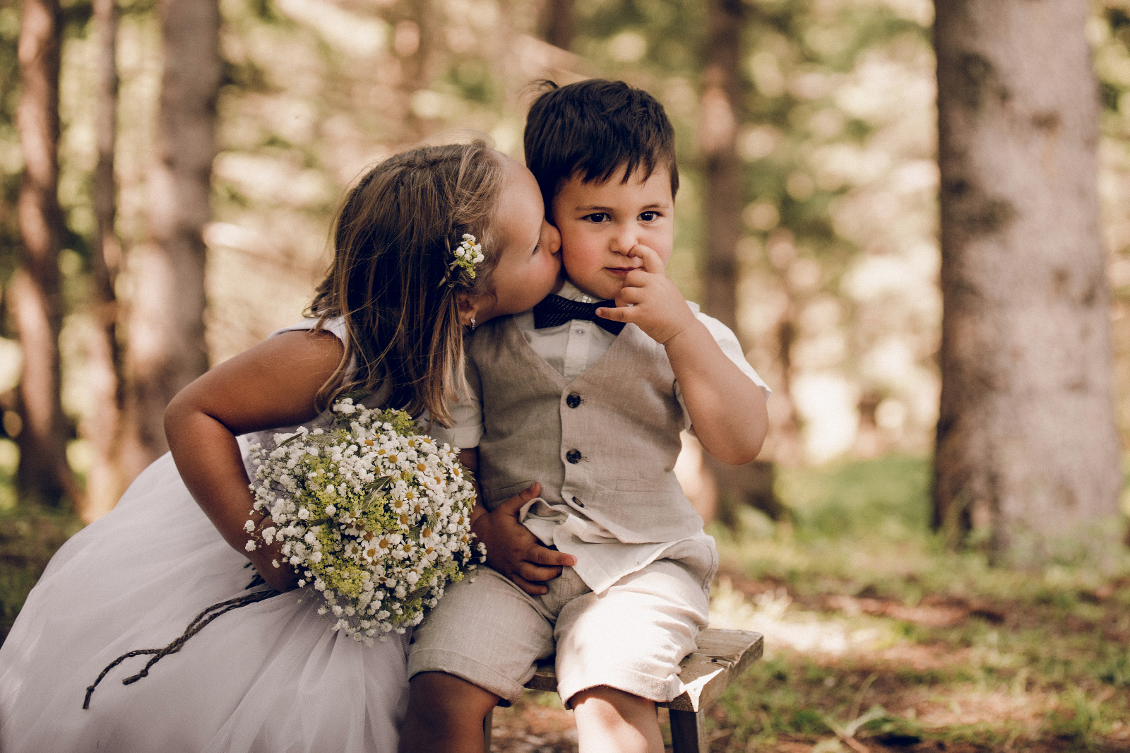 Kinder haben die unglaubliche Gabe ihrer Fantasie freien Lauf zu lassen und ihre ganze Aufmerksamkeit und Freude in ihr aktuelles Fantasieprojekt zu legen. Wenn Kinder einen Plan im Kopf haben, dann beginnen die Augen zu leuchten und nichts kann sie davon abbringen. So muss es auch der kleinen Braut ergangen sein, als sie ihren besten Freund dazu überreden konnte, sie einfach mal zum Spaß zu heiraten. Inspiriert von der Hochzeit ihrer Eltern, die nur Wochen zuvor stattgefunden hatte und einen bleibenden Eindruck in ihr hinterließ. Doch nicht nur ihr bester Freund und Bräutigam war begeistert von der Idee, eine Kinderhochzeit im Wald zu feiern, auch zahlreiche Freunde der beiden wollten gerne bei der großen Hochzeitsfeier dabei sein.